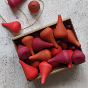 The Grapat Mandala Fire set of 36 little red flames is a superbly versatile, open ended, loose parts wooden toy and the possibilities of use are so exciting!  Designed in order to create a unique sensory experience as you design your own mandala, this also encourages the development of fine motor skills and becomes a beautifully interactive way to teach children about symmetry.
