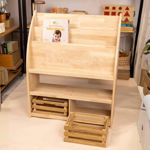 Montessori Beechwood Front Facing Kids Book Shelf Best Seller 15(D) x 120(L) x 120(H)cm Kids Furniture (Furniture Shipping)