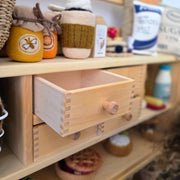 Versatile wooden children's play shop for home, preschool, or kindergarten. Lots of shelf and counter space for the budding shop owner to set up including the shop counter 7 shelves and 4 finger-jointed drawers.