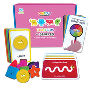 Fun and hands-on set of Shapes & Colours Flashcards perfect for toddlers 1-4 Perfect for helping little ones learn about shapes and colours. Set includes: 10 x shapes flashcards with magnetic puzzle shapes 5 x write and wipe pre-writing activities 5 x colour theory flashcards 1 x colour hunt laminated game