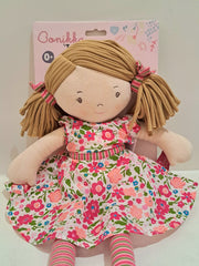Bonikka Dolls Fran with Light Brown Hair & Floral Pink Dress Baby Toddler Plush Toys Baby Gifts Idea 0m+