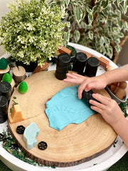 Children will enjoy taking imaginary journeys as they roll and stamp urban and rural forms of transport into play dough, clay or sand. Count the footsteps made by the pedestrian, develop storytelling skills featuring magical journeys, and extend language skills considering where the tracks lead…
