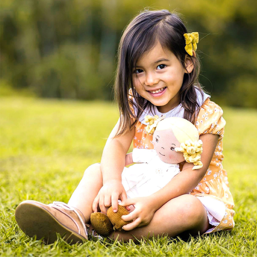 Priscy in her all-natural linen dress, with embroidered flowers, has a vintage charm. Priscy's features include: Priscy's doll dress is removable ...