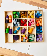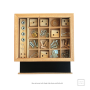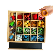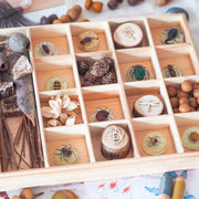 With 17 thoughtfully designed compartments, a removable lid featuring a clear Perspex sheet, and our signature Nesk Kids Blackboard tray, this box is the ultimate companion for storing mesmerizing loose part kits and grapat pieces. Let the journey begin as children explore, create, and play with an array of loose parts.