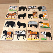The game is to match the 16 different animals to the correct shadows. Children can also guess the names of the animals from the plain shadows and look for the pieces of the animal to match together.