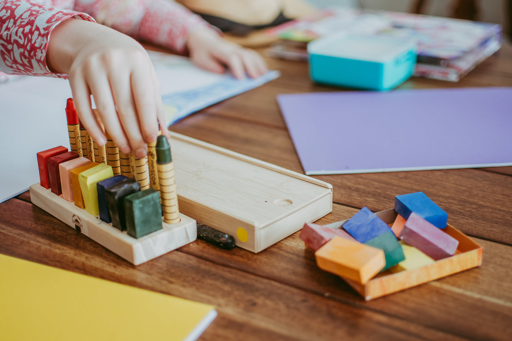Beeswax Crayons 8 Blocks + 8 Stick in Bamboo Box by Apiscor Waldorf Education Inspired Stationary Art and craft for kids 3yrs+
