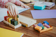The perfect storage place for Apiscor beeswax crayons, these wooden crayon holders fit 8 block crayons and 8 stick crayons.