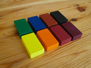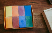 This set of beautiful organic beeswax block crayons by Filana comprises 8 vibrant standard colours: Lemon Yellow, Brilliant Orange, Red, Purple, Blue, Emerald Green, Brown, Velvet and Black