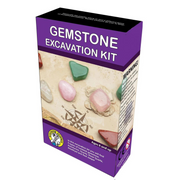 The Gemstone excavation kit involves unearthing 10 tumbled gemstones (two of each type) using the tools and techniques like those of a real geologist!