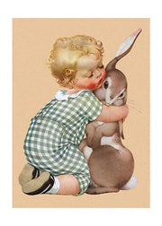 INSIDE GREETING: Here’s a hug for you. The cherubic young boy with his rabbit friend exudes such sweetness that it's no surprise this image has become our most beloved rabbit illustration! This endearing duo made their debut on the Easter cover of Pictorial Review magazine in April 1920. While information is scarce, we have come across sources that attribute this charming artwork to Torre Brevano. Torre Brevano is credited with illustrating a number of covers for Pictorial Review magazine (1899-1939), despite the limited information available about their background and creative contributions. The magazine was initially established to showcase dress patterns from the American Fashion Company, founded by German immigrant William Paul Ahnelt. It reached its peak of popularity during the late 1920s, a period when Brevano was actively contributing to its artistic content. This product was custom-designed and printed at our location in Seattle, WA.
