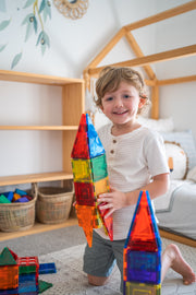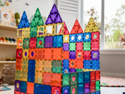Magnetic tiles provide children with open-ended experiences where the only limitation is their imagination. Each tile has strong magnets to allow for tall buildings and structures that do not continually fall down and frustrate little builders.