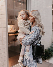 Keep your essentials organised and in easy reach with the OiOi Black Faux Leather Pram Caddy. With adjustable and detachable stroller straps, it securely attaches to any pram with ease and it also converts into a shoulder bag! Measurements: H20cm x W38cm x D12cm Shell: 100% Faux Leather; Lining: 100% Water-Resistant Nylon Fits both single and double prams Strong, detachable velcro pram straps that won't slide down your handlebar Main compartment has two removable dividers for versatility Converts into a shoulder bag with included strap Back security zip pocket for wallet, phone or keys Inclusions - 1 x faux leather pram caddy - 2 x faux leather pram caddy straps - 1 x faux leather cross-body strap Dimensions & Materials Dimensions: H20cm x W38cm x D12cm Weight: 500g Shell: 100% Premium Faux Leather Lining: 100% Water-Resistant Nylon Zips: YKK
