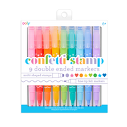 Ooly 9 Double Sided Felt tip Pens with Stamps Confetti Stationary Art and craft for kids 6yrs+