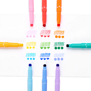 The Confetti Stamp Double-Ended Markers let you draw a pretty picture, and then throw yourself a party on the page. The fine felt tip gives you control over your strokes, while the stamp markers on the other end let you sprinkle confetti shaped stamps all over your artwork. Available in 9 sweet and playful colors, these stamp markers are great for cute art, decorating planner pages, homework, and any just-for-fun projects. Suitable for ages 6 and up