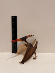 • Characteristics: Though pterosaurs flew, this Pteranodon figure is posed at rest on the ground, showing off its large and dynamic crest. It was long debated whether pterosaurs walked using two legs or four, until pterosaur tracks were discovered indicating a four-legged walk.