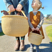 Small Round Bolga Basket with Leather Handle - Natural 22-26cm