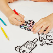 • Each set includes: 5x pre-cut unique designs, 3x keychains and 6 coloured pencils
