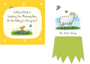 Help Little Chick look for Mummy Hen in Who's Hiding on the Farm? Lift the felt flaps to see where she is. Which other animals will you find hiding underneath?